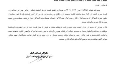 اکبر عبداللهیاصل مدیرکل دارو، در نامهای به معاونین غذا و داروی دانشگاههای علوم پزشکی کشور، خواستار نظارت بر فروش دارو…
