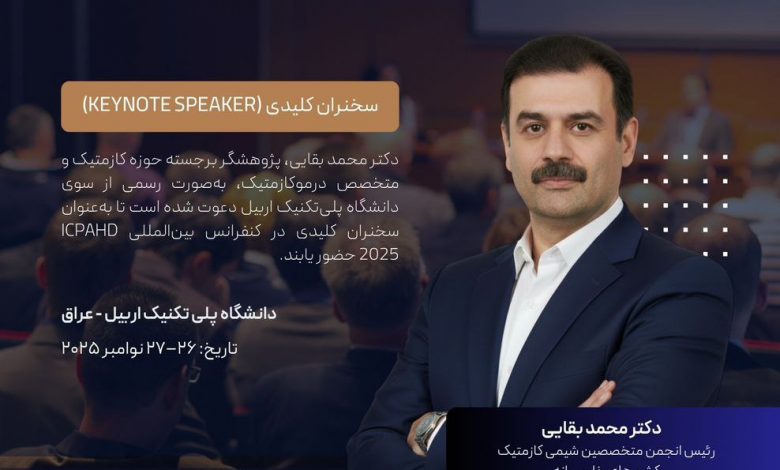 دکتر محمد بقایی، کازمتیک‌ساینتیست و متخصص بین المللی مطرح در حوزه درموکازمتیک، به‌صورت رسمی از سوی دانشگاه پلی‌تکنیک اربیل برای سخنرانی به‌عنوان Keynote Speaker در کنفرانس بین‌المللی ICPAHD 2025 که در تاریخ ۲۶ و ۲۷ نوامبر ۲۰۲۵ برگزار می‌شود، دعوت شده است.
