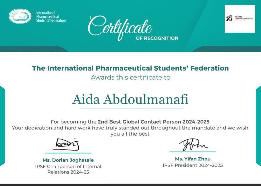 خانم آیدا عبدالمنافی دبیر روابط بین الملل(Contact Person) ایفسا نشنال