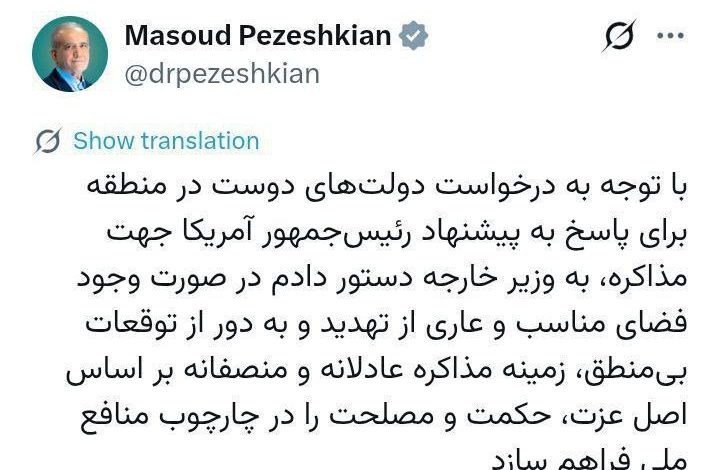 خانه/حوزه سلامت/مسعود پزشکیان رئیس جمهوری، به وزیر امور خارجه دستور داد موضوع مذاکره با آمریکا را بررسی کند حوزه سلامت مسعود پزشکیان رئیس جمهوری، به وزیر امور خارجه دستور داد موضوع مذاکره با آمریکا را بررسی کند فارمانیوز ارسال ایمیل 20 ساعت پیشآخرین به روز رسانی: 14 بهمن 1404 - 10:10 ق.ظ0 2 کمتر از یک دقیقه فیس بوک X پینترست واتس آپ تلگرام اشتراک گذاری از طریق ایمیل چاپ کپی لینک لینک کپی شد فارمانیوز ارسال ایمیل 20 ساعت پیشآخرین به روز رسانی: 14 بهمن 1404 - 10:10 ق.ظ0 2 کمتر از یک دقیقه فیس بوک X پینترست واتس آپ تلگرام اشتراک گذاری از طریق ایمیل چاپ نمایش بیشتر اشتراک گذاری فیس بوک X لینکدین تامبلر پینترست رددیت VKontakte Odnoklassniki پاکت واتس آپ تلگرام وایبر اشتراک گذاری از طریق ایمیل چاپ