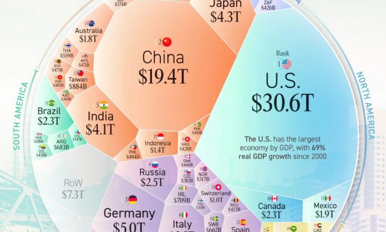 در این میان، ایالات متحده آمریکا با تولید ناخالص داخلی حدود ۳۰.۶ تریلیون دلار همچنان بزرگترین اقتصاد جهان به شمار میرود. طبق این گزارش، اقتصاد آمریکا از سال ۲۰۰۰ تاکنون حدود ۶۹ درصد رشد واقعی را تجربه کرده و فاصله خود را با سایر رقبا حفظ کرده است.