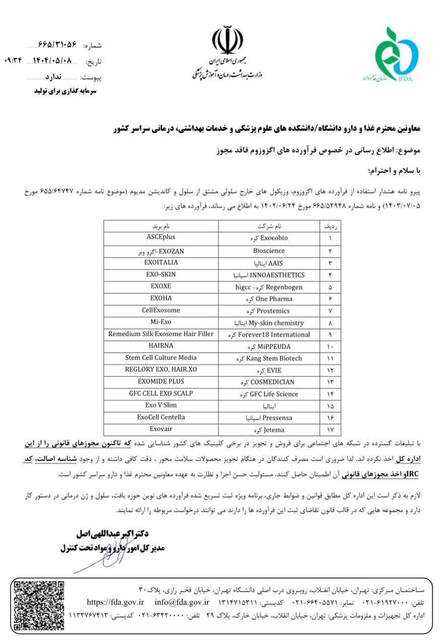 براساس این نامه، هرگونه تجویز، فروش یا تزریق این داروها ممنوع بوده و تخلف محسوب میشود.