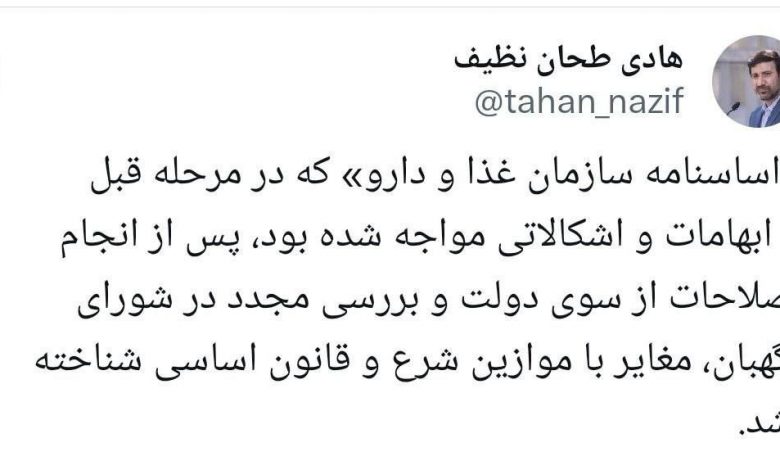 خانه/تغذیه/🔺 «اساسنامه سازمان غذا و دارو» توسط شورای نگهبان تأیید شد تغذیهدارو 🔺 «اساسنامه سازمان غذا و دارو» توسط شورای نگهبان تأیید شد فارمانیوز ارسال ایمیل 4 روز پیشآخرین به روز رسانی: 14 بهمن 1404 - 11:46 ق.ظ0 2 کمتر از یک دقیقه فیس بوک X پینترست واتس آپ تلگرام اشتراک گذاری از طریق ایمیل چاپ کپی لینک لینک کپی شد فارمانیوز ارسال ایمیل 4 روز پیشآخرین به روز رسانی: 14 بهمن 1404 - 11:46 ق.ظ0 2 کمتر از یک دقیقه فیس بوک X پینترست واتس آپ تلگرام اشتراک گذاری از طریق ایمیل چاپ نمایش بیشتر اشتراک گذاری فیس بوک X لینکدین تامبلر پینترست رددیت VKontakte Odnoklassniki پاکت واتس آپ تلگرام وایبر اشتراک گذاری از طریق ایمیل چاپ